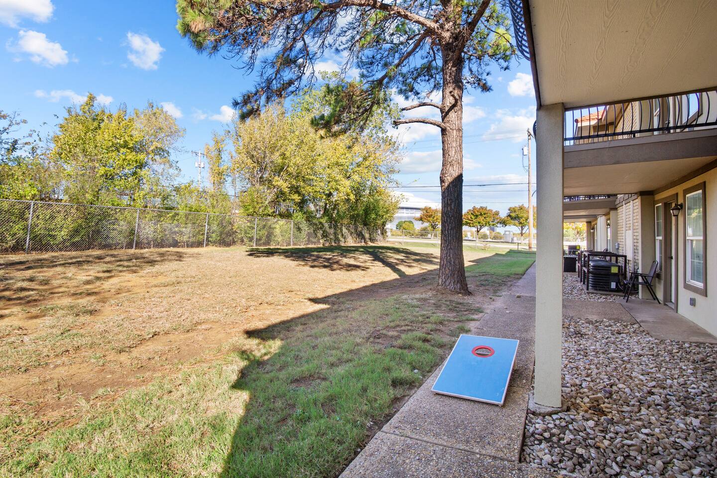 Arlington man-cave meets comfort 5min walk through the park to AT&T stadium, Globe Life Park or Choctaw stadium! Not just a place to stay, but to play! Rack a game of pool, throw some darts and stream your favorite apps on our 65" 4k HDTV. Relax in style with luxury bedding and towels, each room with own TV, or enjoy a back yard with tailgating games. Ground floor apartment with a FREE parking spot - no driving or taxi's on game day is a real bonus. 5min drive to six flags & HH!